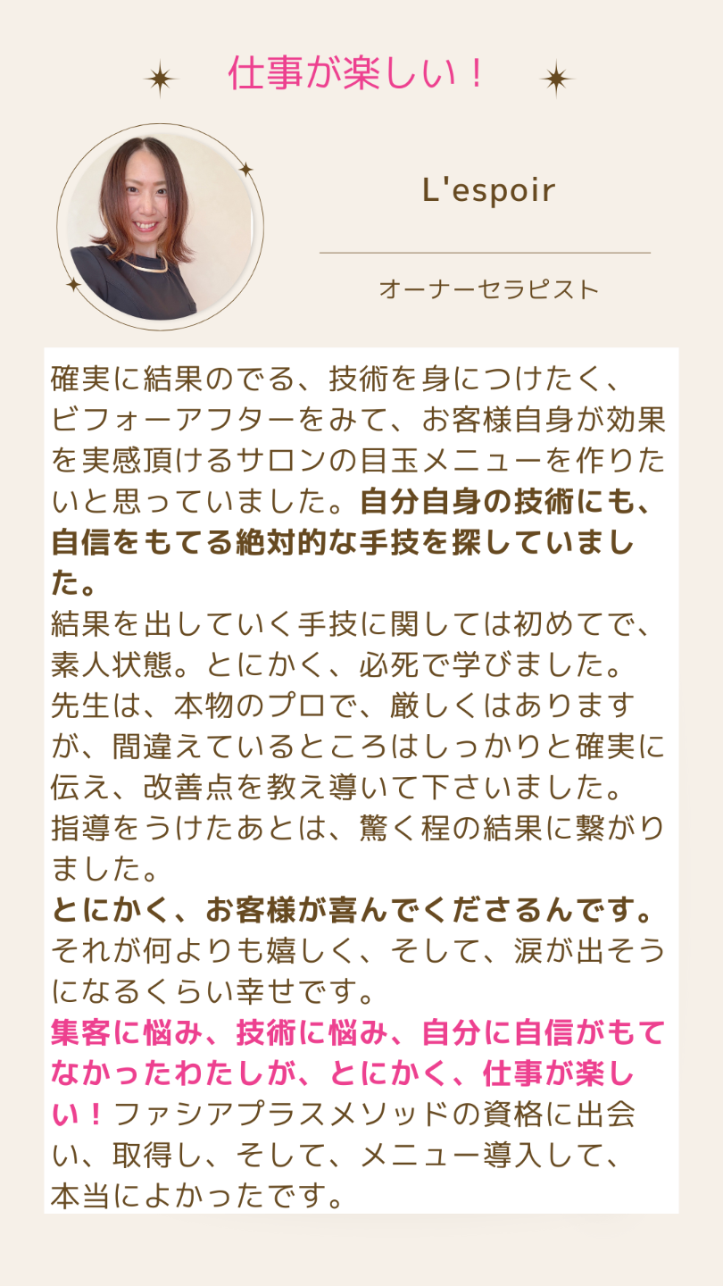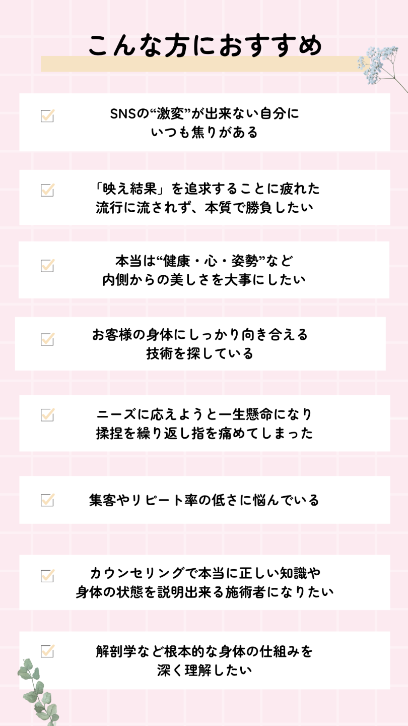 あなたの施術は、お客様の人生を変えるレベルの結果を出せます。