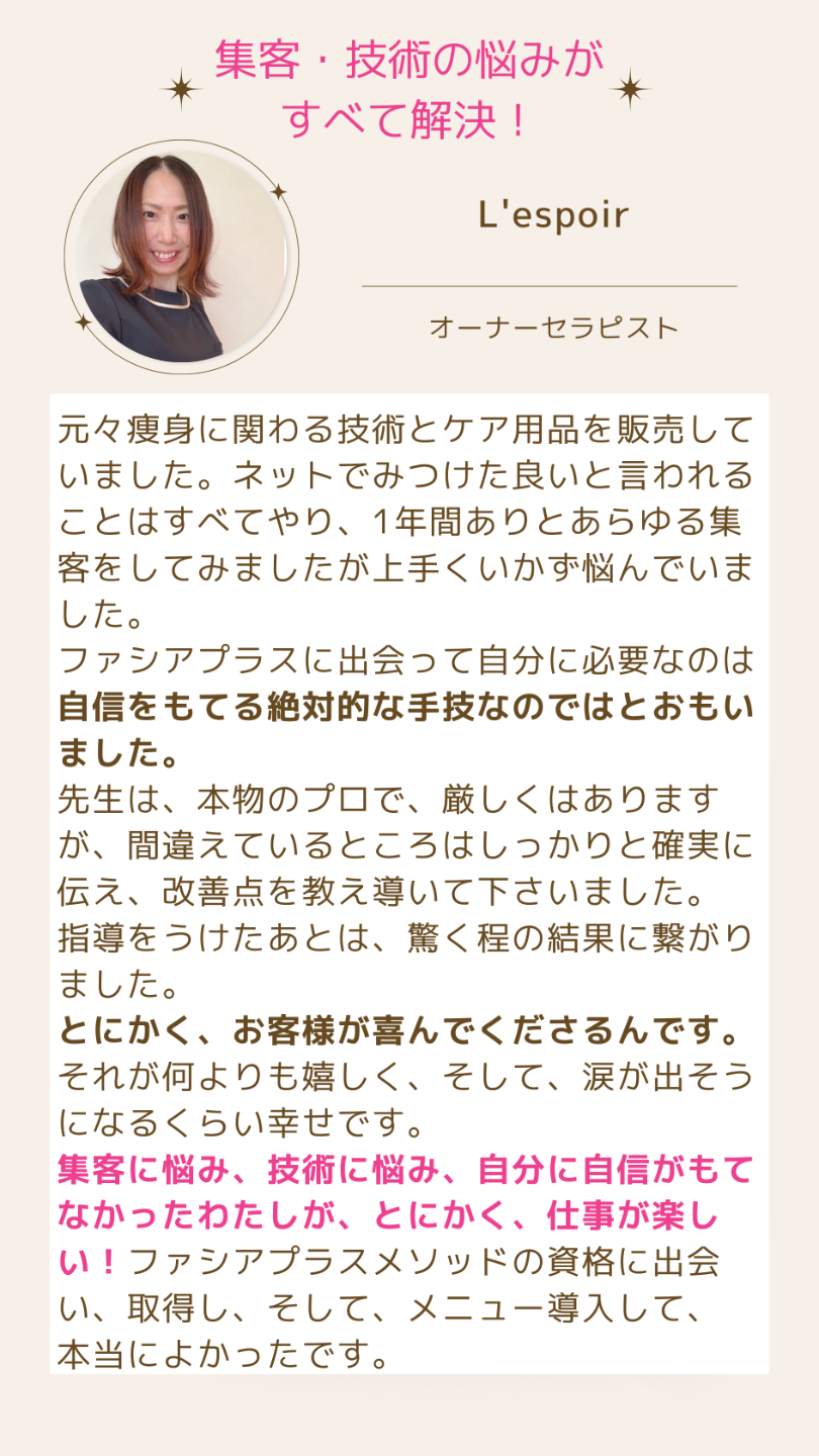 あなたの施術は、お客様の人生を変えるレベルの結果を出せます。